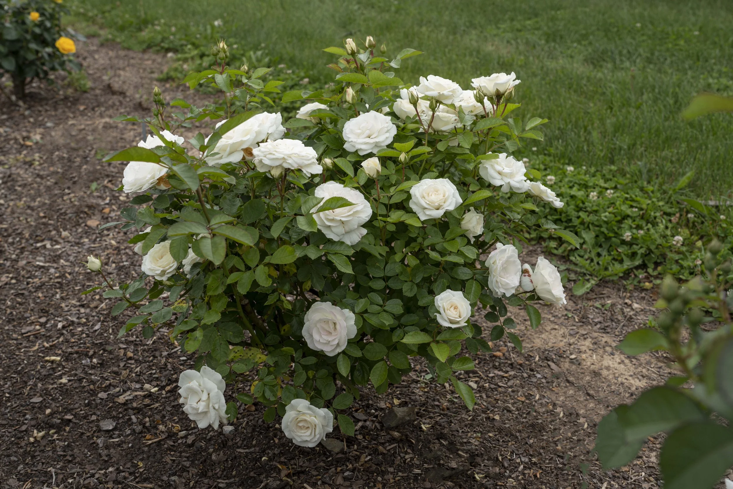 White Veranda® (‘KORfloci111’) - Compact and bushy, this floriferous floribunda boasts double clear-white blooms. It is great for patio pots and borders. Introduced by Star® Roses and Plants